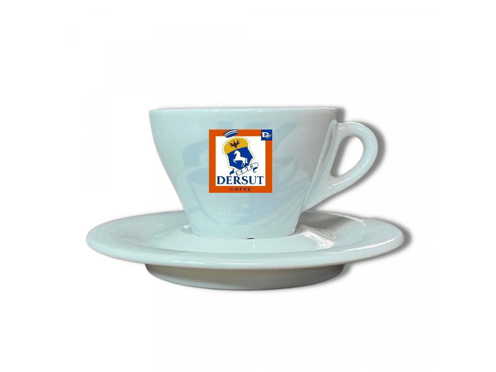 Hrnček z tvrdého talianskeho porcelánu na kávu Lungo v talianskom štýle s logom Dersut orange/blue.